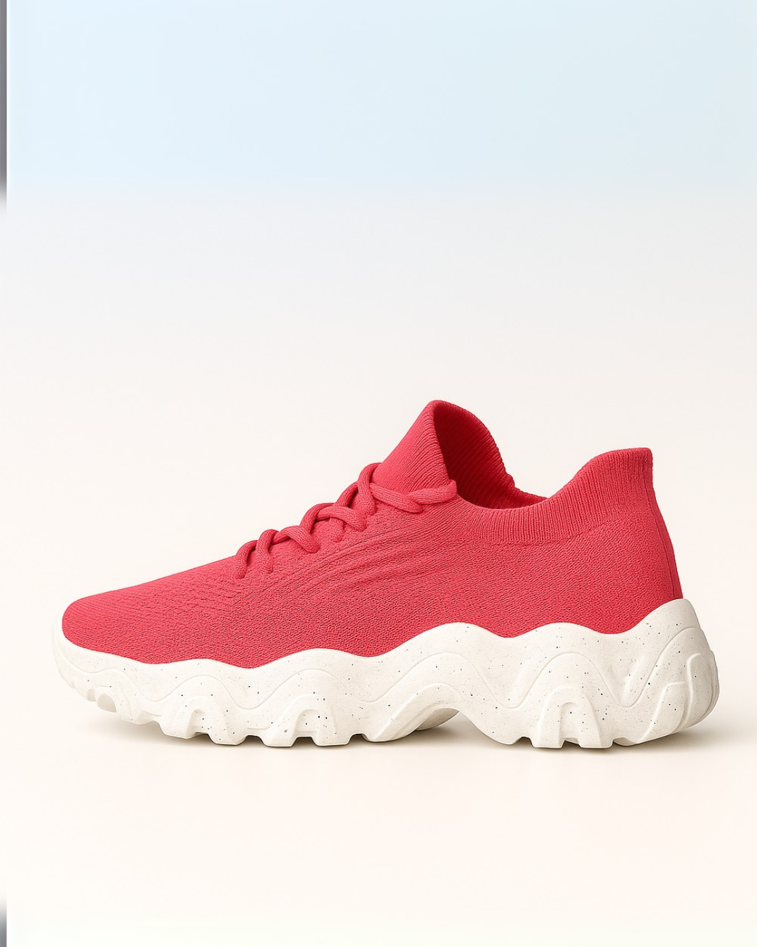 Top view of OrthoEase Luxe Bubble sneakers in neon pink with white speckled sole