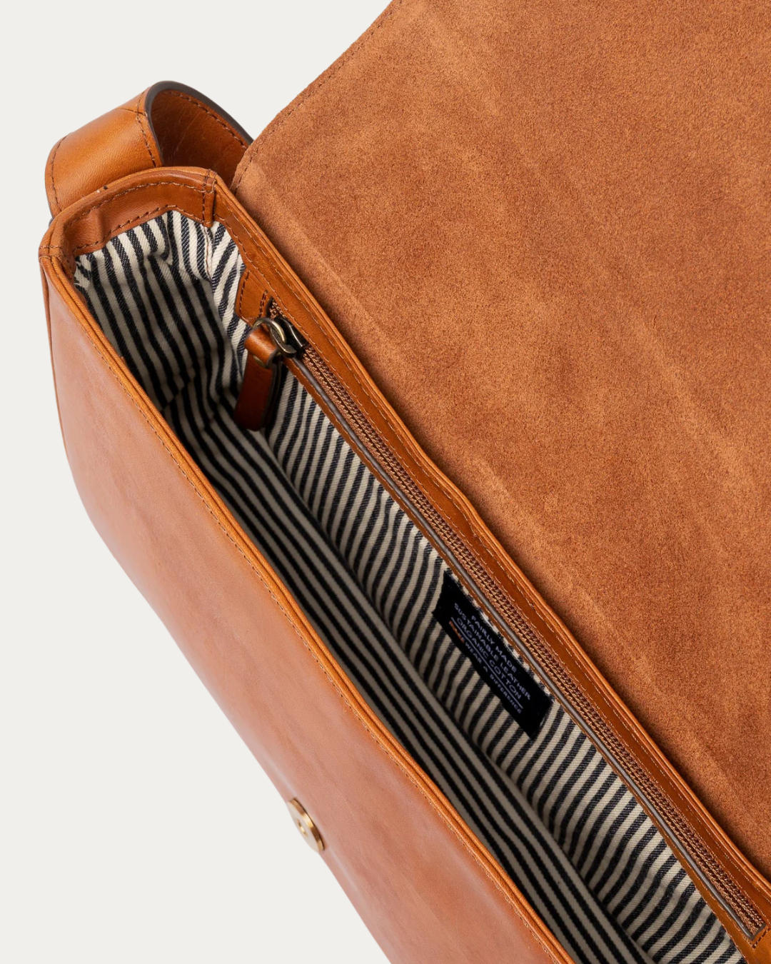 Gina Baguette is the perfect balance between convenience and elegance, a sleek model for every day. She has one main compartment with a handy slip pocket, plus a zipper to keep your valuables safe. Its structured, slim design offers plenty of space for your phone, wallet, keys and even a large sunglasses case. Both timeless and practical, Gina's strap is adjustable with an easy button system: with gold-colored studs on each side, you simply choose the ideal fit and tuck the rest of the strap neatly under the bag.